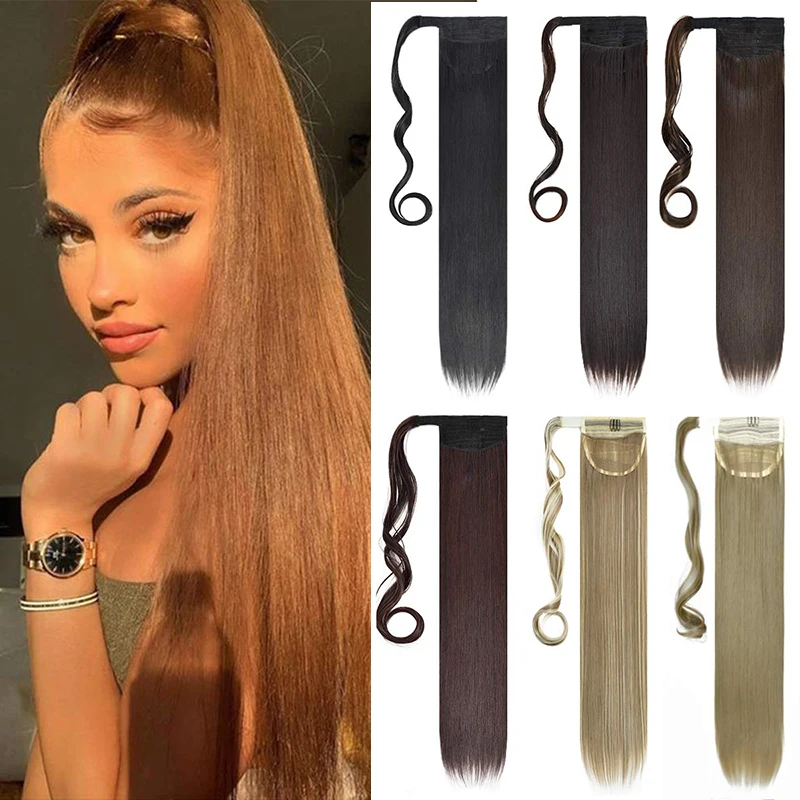 Women Synthetic Pony Tail Hair Extensions 22inch Long Natural Wave Femme Horse Tail Blonde Burg For Girls High Temperature Fiber Synthetic Ponytails Aliexpress